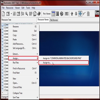 | 9. Clicchiamo col tasto destro su COMMON.ANIMATED.BACKGROUND.PNG e selezioniamo extract/extract as “COMMON.ANIMATED.BACKGROUND.PNG” e salviamo l’immagine sul Desktop. 10. Clicchiamo col tasto destro su COMMON.ANIMATED.BACKGROUND.PNG e selezioniamo Assign/Assign To.. caricando l’immagine desiderata. (affinchè la procedura vada a buon fine l’immagine dovrà avere estensione .PNG con dimensione 500×300 pixel). NOTA: Al seguente indirizzo potrete convertire la vostra immagine con estensione .PNG (con estensioni differenti si avrà esito negativo) | ||