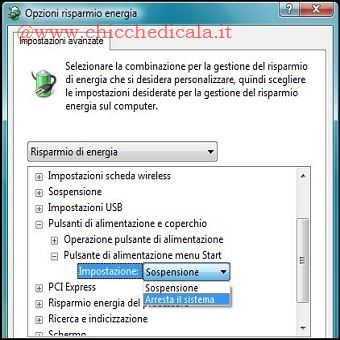 | 1. Apriamo il Prompt dei comandi e digitiamo: powercfg.cpl,1 2. Si aprirà la finestra di dialogo Opzioni Risparmio Energie, scorriamo in fondo alla lista. Estendiamo la voce “Pulsante di Alimentazione e Coperchio“, appariranno due sottovoci, ma focalizziamo la nostra attenzione su “Pulsante di Alimentazione Menu Start“. Da qui, sarà possibile cambiare la configurazione selezionando l’opzione Arresta il Sistema. | ||
