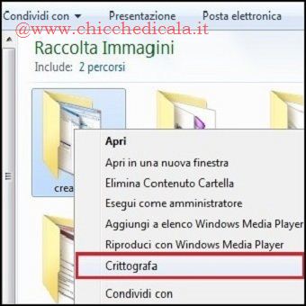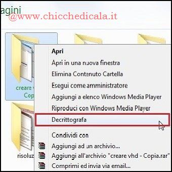 | 3. A questo punto quando cliccherete con il tasto destro su un file o una cartella verrà visualizzato il comando Crittografa, ovviamente il comando Decrittografa sarà presente solo selezionando un file/cartella Crittografata. | ||