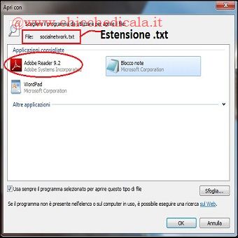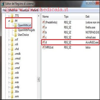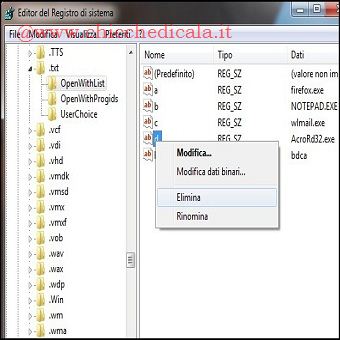 | Se accidentalmente apriamo un file con il programma sbagliato, si noterà la presenza del programma aggiunto alla lista del menu Apri Con (Apri con / Programmi predefiniti). Una volta aggiunto, rimarrà presente per sempre anche se non è il programma corretto per aprire il tipo di file. Ad esempio, un file .txt dovrebbe essere aperto utilizzando il Blocco note o Word Pad, ma se accidentalmente verrà aperto con Adobe, nella lista dei programmi predefiniti visualizzeremo Adope per tutti i file con estensione .txt. Come rimuovere il programma sbagliato dalla finestra “Apri con”? E’ possibile rimuoverlo accedendo al solito registro di configurazione, ma vediamo come. | ||