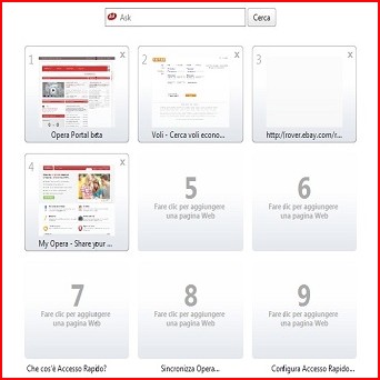 PARTENZA A RAZZOAll’avvio del programma incontriamo tempi di avvio parecchio ridotti e uno Speed Dial rinnovato, finalmente configurabile in modalità grafica. Già con la precedente versione di Opera, gli sviluppatori avevano introdotto come alternativa all’Homepage questa schermata con nove riquadri, al cui interno trovavamo i nostri siti preferiti, agevolando l’accesso alle rispettive pagine. Facendo clic col tasto destro del mouse su un punto vuoto, la voce Configura Accesso Rapido proporrà l’aumento dei riquadri fino a un numero di 25, oltre all’inserimento di un’immagine come sfondo. Interessante anche la possibilità di scegliere delle disposizioni “asimmetriche”, ad esempio 4×3, per valorizzare i monitor di tipo WideScreen. | ||