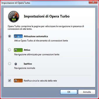 OPERA TURBOPer estendere la navigazione “a tutto gas” ai titolari più o meno occasionali di connessioni lente, è stata inserita la modalità Opera \t\tTurbo. Già sperimentata con Opera Mini, e con eccellenti risultati, sui dispositivi mobili, non è una tecnologia innovativa poichè ripropone quanto offerto in passato da alcuni provider e da servizi di terze parti come OnSpeed.com. Di diverso c’è il prezzo, poichè il tutto viene fornito gratuitamente. Ecco come funziona: un server collocato fra il sito e l’utente comprime i contenuti delle pagine Web, riducendo l’ingombro. Chi naviga con un collegamento 56K usufruisce di un caricamento più veloce delle pagine, chi arranca col GPRS, e magari con un anacronistica tariffazione a MB scaricati, vedrà ridurre drasticamente il traffico sottoposto a pedaggio. I benefici non riguardano i download, poichè la mole di dati in transito rimane inalterata, mentre il suo utilizzo si rivela controproducente con connessione a banda larga: il tempo necessario alla compressione di testo e immagini è infatti superiore a quello impiegato per ricevere normalmente la pagina. La sua attivazione e disattivazione avviene sia dall’apposità icona, sia da Preferenze Veloci. Interessante l’attivazione automatica, che “fiuta” la velocità della connessione e decide se abilitare o meno Opera Turbo. Saltando da una connessione all’altra, magari per lavoro, usufruiremo sempre della configurazione più adatta senza modificare nulla. | ||