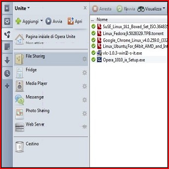 UNA VERA SUITENonostante tenti di farsi largo nella “guerra dei Browser”, Opera non si limita alla navigazione fra le pagine web. Tra i tanti strumenti aggiuntivi spicca il download manager che non offre opzioni avanzate, ma supporta il resume senza necessità di software aggiuntivo e gestisce il protocollo FTP. Implementato anche lo scaricamento via Torrent, mentre un apposito client garantisce la connessione al canale di chat IRC. Tutte queste componenti appaiono accomunate da una precisa filosofia: fornire applicativi limitati alle funzionalità essenziali, ma di immediato utilizzo e lasciare sempre la scelta fra il programma “interno” a Opera e un’applicazione di terze parti. | ||