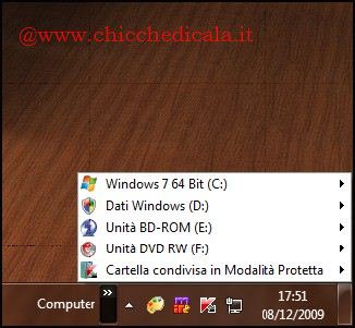 | Come avrete potuto notare Windows 7 rappresenta un notevole passo in avanti rispetto alle versioni precedenti del sistema operativo, dal punto di vista delle prestazioni, della rapidità d’azione e della praticità d’uso, nella sezione dedicata abbiamo visto tantissimi modi in cui estendere le sue funzionalità per consentire un’ esperienza ancora più efficiente ed efficace. L’obiettivo di questo tutorial è rivolto alla personalizzazione della TaskBar, vedremo come aggiungere l’opzione Risorse del Computer in modo da richiamare la pagina principale ed averne un accesso molto più rapido. | ||
