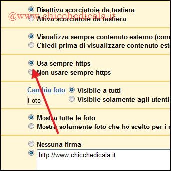 | 2. Quando ci colleghiamo a GMail con reti non sicure (ad esempio WLAN di un locale pubblico), i nostri dati possono essere intercettati da altri. Per impedirlo forziamo GMail ad utilizzare sempre una connessione sicura. Per farlo, andiamo in Impostazioni nella schermata Generale. Spostiamoci verso il centro, selezioniamo Usa sempre Https e premiamo Salva Modifiche. 3. Se ci siamo accorti che il nostro account è stato visualizzato da altri utenti, dopo aver attivato la connessione HTTPS conviene cambiare la Password per accedere alla casella di posta. Per farlo, andiamo in Impostazioni/Account e clicchiamo sul link Impostazioni dell’Account Google. Andiamo in Cambia password e cambiamo la vecchia parola chiave. | ||