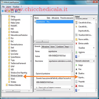 | 1. In vista è necessario aprire Utilità di Pianificazione. Per fare questo portiamoci nel pannello di controllo e apriamo Strumenti di amministrazione. Ora scorriamo verso il basso e selezioniamo l’opzione Utilità di pianificazione. Nel riquadro di sinistra, apriamo l’albero di Windows e selezioniamo WindowsCalendar. 2. Nella Sezione Azioni vedremo l’opzione Esporta Selezioniamo quest’ultima e salviamo, in una cartella creata ad hoc, un Modello come file XML. Apriamo Esplora risorse e navighiamo alla cartella C: \ Programmi \ Windows Calendar. Con un clic destro del mouse, selezioniamo l’opzione Copia e incolliamo la medesima nella Directory appena creata. Ora disponiamo di entrambi i file necessari per l’installazione, nel caso abbiate già aggiornato a Windows 7 è sufficiente scaricare l’archivio dal link sopra citato. | ||