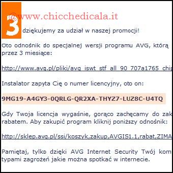 | 3. Riceveremo una seconda E-mail contenente il nostro codice di attivazione valido per 3 mesi. 4. Portiamoci al seguente indirizzo e scarichiamo AVG internet Security (Trial). Durante la fase d’installazione, quando richiesto, inseriamo il codice di attivazione. | ||