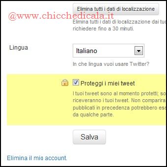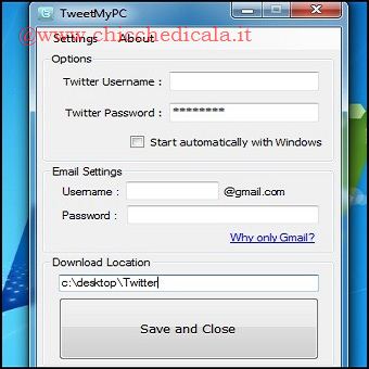 | 3. Proseguiamo e al termine dell’installazione clicchiamo sull’icona di TweetMyPC sul Desktop. Il programma si carica nella system tray. Col tasto destro del mouse clicchiamo sull’icona della barra e scegliamo la voce Edit Setting. Inseriamo i dati di accesso a twitter e salviamo con Save and Close. 4. Per controllare il PC da remoto, TweetMyPC deve essere in esecuzione (icona visibile nella system Tray di windows) e il PC connesso a internet. Da un computer qualsiasi munito di connessione, effettuiamo il login a twitter. Clicchiamo su Impostazioni e poi spuntiamo la voce Proteggi i miei Tweet. Clicchiamo su Salva. Questa impostazione evita che i nostri messaggi e quelli di TweetMyPC siano pubblici. | ||