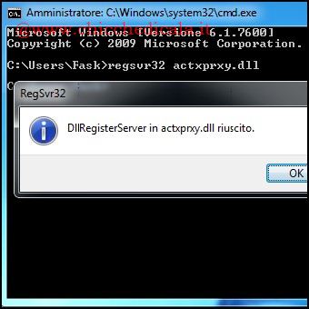 | 1. Apriamo il menu Start e digitiamo cmd nella barra di ricerca. Premiamo contemporaneamente i tasti Shif + Windows + Invio per avviare il prompt dei comandi con diritti amministrativi. In alternativa possiamo portarci nel menu Start / Tutti i Programmi / Accessori, cliccare col tasto destro del mouse sulla Voce Prompt dei comandi e selezionare Esegui come Amministratore. 2. Digitiamo il comando regsvr32 actxprxy.dll seguito da Invio e clicchiamo OK. In questo modo andremo a registrare nuovamente la libreria DLL in questione. Riavviamo il computer per rendere effettive le modifiche apportate. NOTA: Possiamo usufruire del Tweak ogni qual volta noteremo un calo di prestazioni di Internet Explorer. | ||
