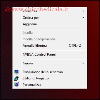 | 3. Aprendo il menu contestuale noteremo il nuovo comando aggiunto. A questo punto perchè non aggiungere anche la rispettiva icona, spostando la voce verso la parte inferiore del menu contestuale ? 4. Evidenziamo la chiave Editor di Registro, spostiamoci sulla parte destra e creiamo una Nuova / Valore Stringa, nominandola Icon. Modifichiamo i Dati Valore digitando regedit.exe. | ||