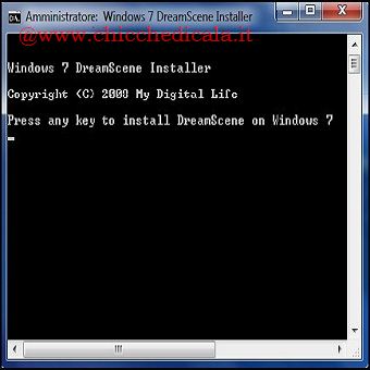 | 1. Scarichiamo l’eseguibile dal seguente indirizzo e procediamo con l’installazione. Quando richiesto nella finestra DOS clicchiamo un tasto per proseguire. | 2. L’eseguibile procederà al riavvio del processo Explorer.exe per rendere effettive le modifiche. portandosi in C:\Windows\Web troveremo la cartella aggiunta Windows DreamScene. | |