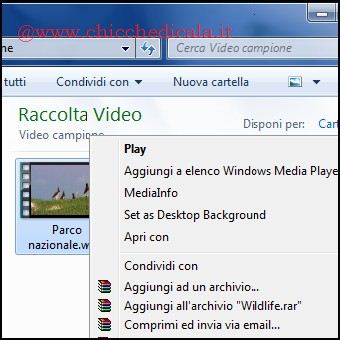 | 3. per avviare una presentazione video sul nostro desktop, basterà cliccare col tasto destro del mouse e selezionare Set as Desktop Background. | 4. Cliccando col tasto destro del mouse sul desktop e selezionando personalizza, noteremo la voce aggiunta anche nella finestra di dialogo sfondo per desktop. | |