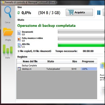 | Per quanto ci sforziamo di essere puntigliosi nel salvare tutto quello che ci serve nei nostri backup, prima o poi, per distrazione o per un imprevisto, rischiamo di dimenticare qualcosa. Gli strumenti automatici sono una grande comodità, ma spesso impegnano il nostro computer a orari prestabiliti e siamo spesso obbligati ad utilizzare un’unità esterna, e se per caso il computer in quel momento non è acceso il salvataggio “salta”. Partendo da questi due presupposti gli sviluppatori hanno messo a punto Memopal, una soluzione che ci permette di effettuare i nostri backup online senza bisogno di lunghi tempi di attesa e soprattutto senza bisogno di pianificare un momento preciso per farli. Fino a qualche tempo fa questa soluzione era esclusivamente a pagamento, ma di recente è stata resa disponibile anche una versione gratuita che offre 3 Gigabyte di spazio per archiviare i nostri file. | ||
