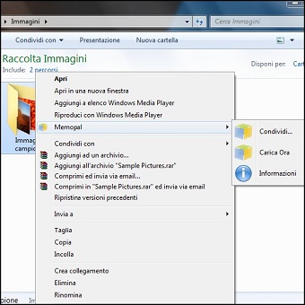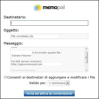 | 7-8. Possiamo anche usare Memopal per condividere file di grandi dimensioni con i nostri amici. Dopo l’installazione, infatti, troveremo nel menu contestuale una nuova voce che ci permette di condividere direttamente i file. Scegliendola si aprirà una pagina dedicata che ci permetterà di inviare una email con il collegamento al file a chiunque vogliamo, con un codice univoco del quale possiamo decidere il periodo di validità. Subito dopo il client inizierà a caricare il file. I nostri amici non dovranno fare altro che seguire il collegamento che ricevono per scaricare il file. Inoltre possiamo anche consentirgli di condividere file usando il nostro spazio. | ||