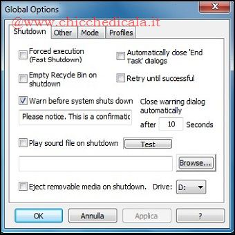 | Durante la settimana siete soliti trascorrere le serate, guardandovi film o trasmissioni televisive in diretta per poterle registrare? No, magari alcuni preferiscono guardarsi un dvd, o altri ancora sfruttare il PC collegato all’HDTV. La stanchezza però a volte tira brutti schezi e quindi ci ritroviamo a far sonni profondi ancora prima della fine delle visione. Allora perchè non programmare lo spegnimento del pc in relazione alla fine della visione del film? Nulla di più semplice con Smart ShutDown che, oltre a spegnere il PC a un orario prestabilito, offre diverse opzioni come, lo svuotamento del cestino, espulsione delle unità rimovibili, “killaggio” dei processi e tutto questo prima che si spenga il PC. | ||