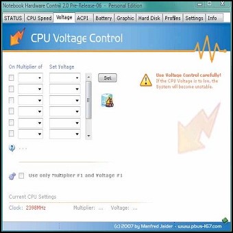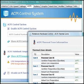 | 3. La terza scheda, relativa al voltaggio, va utilizzata con molta attenzione. Qui si ha la facoltà di stabilire i livelli di alimentazione della CPU (nel caso di multicore, delle singole unità). È necessario essere sicuri di quel che si fa: valori errati possono rendere instabile o addirittura bloccare il computer, oltre a produrre guasti nella componentistica. 4. Spostatevi nella scheda ACPI, dove viene gestito l’ambiente di controllo della temperatura delle componenti interne. In particolare, come detto in precedenza, è possibile monitorare i valori relativi a ogni “core” di un processore multi elemento. | ||