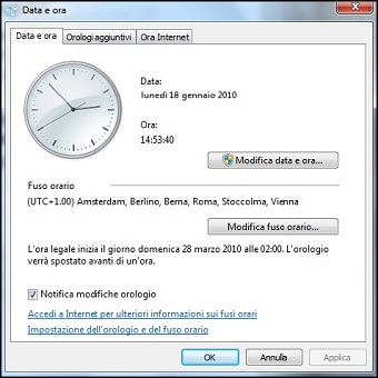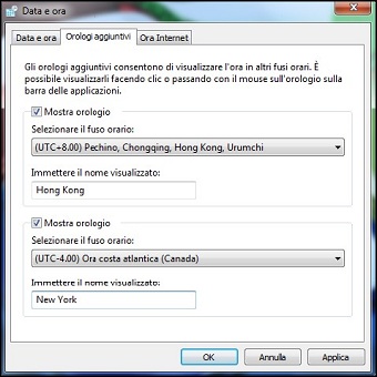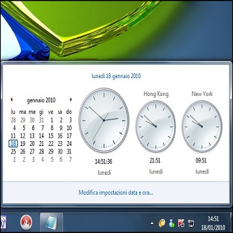 | Con Windows 7 abbiamo la possibilità di impostare tre diversi orologi, una situazione che farà comodo a tutti coloro che possono trovarsi a lavorare in fusi orari differenti. La scheda Orologi aggiuntivi della finestra di dialogo Data e ora, è una novità introdotta da Windows 7. Qui possiamo attivare ben due orologi aggiuntivi, impostati su altrettanti fusi orari differenti. In questo modo potremo tenere d’occhio contemporaneamente tre orari differenti. Possiamo anche attribuire un nome appropriato a questi due orologi aggiuntivi. Dopo aver eseguito questa operazione, possiamo controllare l’ora al volo, semplicemente portando il puntatore del mouse in corrispondenza dell’angolo inferiore destro dello schermo, dove è indicata l’ora corrente. In un piccolo riquadro, troveremo la data odierna, l’Ora locale e gli orologi che abbiamo aggiunto. | ||