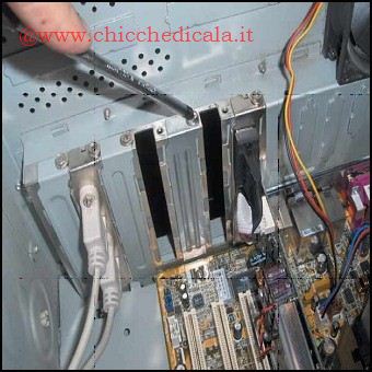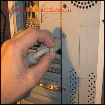 | 1. A computer spento, staccate il cavo di alimentazione del PC e togliete tutti i cavi collegati, svitando eventuali fermi di sicurezza. Liberate un po’ di spazio sulla scrivania o su un tavolo abbastanza grande per coricare il case su un lato, in modo da poter operare meglio sui componenti interni. 2. Togliete il pannello laterale del computer, facendo pressione sulla maniglia oppure, nel caso sia bloccato da semplici viti nella parte posteriore, utilizzate un cacciavite a stella per toglierle. Il pannello rimovibile è solitamente quello sinistro. | ||