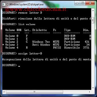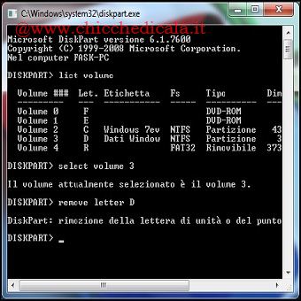 3-4. A questo punto basterà digitare remove letter D seguito da Invio. Per riabilitare la visualizzazione della partizione, ripetete i passi 1,2 e procedete in questo modo: