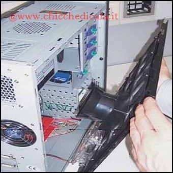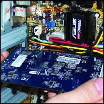 | 1. Per cominciare con l’installazione bisogna disporre di un piano di lavoro comodo, dotato di uno spazio adeguato. Un tavolo va benissimo, ma vi consigliamo di liberare la maggior quantità di spazio possibile per lavorare nel modo migliore. Inoltre, è necessario procurarsi un cacciavite a stella, possibilmente dotato di uno stelo lungo e di una punta magnetica per evitare di perdere le viti durante il lavoro. Come prima operazione, dovete staccare tutti i cavi di collegamento al case del PC e sistemarlo in posizione verticale sul tavolo. 2. Il case che abbiamo utilizzato per il nostro esempio prevede una procedura di smontaggio semplificato sia del pannello laterale sia dei supporti in plastica per il fissaggio delle periferiche. Negli chassis di vecchia generazione però, vengono utilizzate delle viti sia per i pannelli esterni sia per le varie schede. Dando un’occhiata alla parte posteriore del PC potete notare subito che le porte standard (USB, Ethernet) e le uscite (VGA, DVI), si trovano sulla sinistra. Questo perché la scheda madre è montata su questo lato dello chassis. Per riuscire a lavorare sulla scheda dovete quindi smontare il pannello di destra. In alcuni case, come quello del nostro esempio, prima del pannello laterale dovete togliere anche quello superiore. Durante la rimozione dei sostegni (viti o congegni in plastica), ricordatevi di sostenere con una mano la parte che state smontando (come nella foto sulla destra) per evitare che questa possa cadere rovinosamente sul tavolo. Inoltre, se sulla fiancata è stata posizionata una ventola per il raffreddamento, fate attenzione a non danneggiare i fili che la collegano alla scheda madre. Nel caso essi siano troppo corti, bisognerà staccarli dal relativo connettore per liberare completamente il pannello. Una volta tolto il pannello, conviene approfittare della situazione per controllare il livello di polvere che, con il passare del tempo, si è accumulato all’interno del case. Se notate degli accumuli di pulviscolo sul vostro PC, potete quindi procedere alla pulizia con un’apposita bomboletta d’aria compressa reperibile presso qualunque negozio d’informatica. Fatto questo, come è facilmente intuibile, per continuare con l’installazione delle nuove schede per prima cosa, dovete rimuovere quella preesistente. È essenziale quindi togliere la vite o il meccanismo in plastica che blocca la scheda nel suo alloggiamento. | ||
