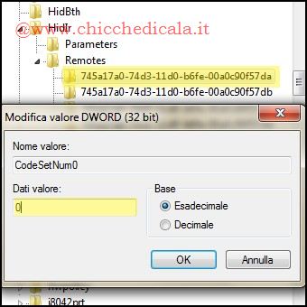 | 1. Apriamo il Menu Start e clicchiamo su Esegui, oppure utilizziamo la combinazione di tasti Windows + R e digitiamo regedit seguito da Invio. Navighiamo \t\talla chiave: HKEY_LOCAL_MACHINE \\ SYSTEM \\ CurrentControlSet \\ services \\ HidIr \\ Remotes \\ 745a17a0-74d3-11d0-b6fe-00a0c90f57da 2. Dal riquadro destro individuiamo la chiave nominata CodeSetNumO e, con un doppio clic, modifichiamo i Dati Valore a 0. Clicchiamo il pulsante OK per confermare e riavviamo il computer. A questo punto saremo in grado di utilizzare qualsiasi telecomando a infrarossi. | ||