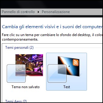 | Un tema è una combinazione di immagini, colori e suoni per il computer. Include uno sfondo per il desktop, uno screen saver, un colore per il bordo delle finestre e una combinazione di suoni. Alcuni temi possono inoltre includere icone del desktop e puntatori del mouse. In Windows sono disponibili diversi temi preimpostati. È possibile scegliere un tema Aero per personalizzare il computer, il tema Windows 7 Basic se il computer è lento, o un tema con un forte contrasto così da rendere gli elementi sullo schermo più nitidi. Quello che molti non sanno è che esiste la possibilità di utilizzare i Feed RSS per cambiare gli sfondi in modo del tutto automatico. Come ? scopriamolo assieme. | ||