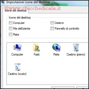| 5. Per farlo, clicchiamo col tasto destro del mouse su un punto vuoto del desktop e selezioniamo Personalizza. Qui si trova, sulla sinistra, la voce Cambia Icone Sul Desktop. Accediamo e deselezioniamo l’opzione Cestino, confermando con Applica/OK. Proprio in stile MAC ecco concluso il nostro lavoro. 6. Per svuotare il cestino basterà un clic destro sul medesimo, selezionando la voce Svuota Cestino presente nel menu contestuale. | ||