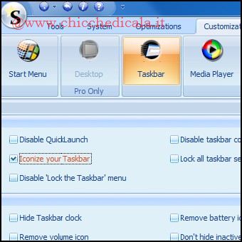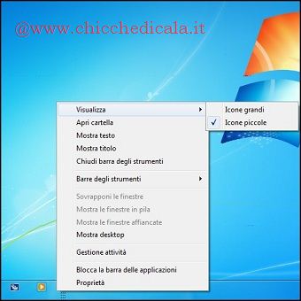 | 5. La barra di Windows 7 offre anche icone per lanciare rapidamente i programmi. Per aggiungere questa funzionalità scaricate EnhanceMyVista dal seguente indirizzo, avviatelo e selezionate Customizations / Taskbar. Attivate la casella Iconize your Taskbar, salvate e riavviate. 6. Ora fate clic destro sulla Barra delle Applicazioni e se necessario deselezionate Blocca la barra delle applicazioni per sbloccarla. Fate clic destro nella barra di Avvio Veloce e selezionate Visualizza / Icone grandi dal menu contestuale. Se contiene molte icone, dovrete trascinare il bordo verso destra per allargarla. | ||