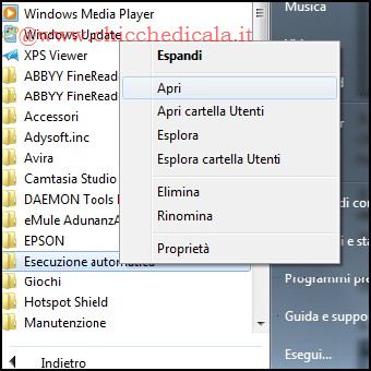 | 1. Scarichiamo l’eseguibile Chicche-HotKeys.exe sul desktop e lanciamolo con un doppio clic. A questo punto tutto quello che dobbiamo fare per visualizzare le estensioni di file è premere contemporaneamente i tasti WIN + è ed effettuare un Refresh col tasto F5. 2. Se lo desideriamo è possibile avviare il processo automaticamente posizionandolo nella cartella Esecuzione automatica (Start\tutti i Programmi\Esecuzione automatica). In questo modo ad ogni accesso ChiccheHotKeys si avvierà in maniera del tutto autonoma. | ||