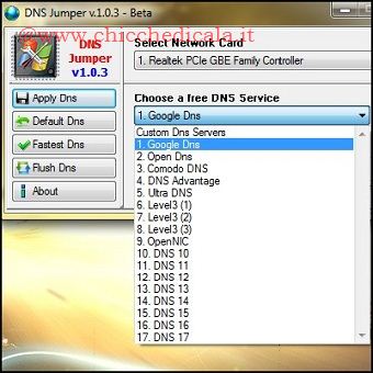 | In passato abbiamo visto come impostare i nuovi server DNS di Google. Questi nuovi DNS servono soprattutto per velocizzare la connessione ad internet rendendo più veloce il caricamento delle pagine web essendo applicabili a qualunque PC. Esistono diversi server DNS altrettanto veloci e affidabili. Se vogliamo provare la loro efficienza possiamo usare il piccolo software gratuito DNS Jumper. Questo programma, che non necessita d’installazione, non fa altro che offrirci la possibilità, tramite appositi pulsanti, il cambiamento dei server DNS nei sistemi operativi Windows. L’applicazione, come detto, mostrerà un elenco di server DNS che potranno essere applicati in un clic. | ||