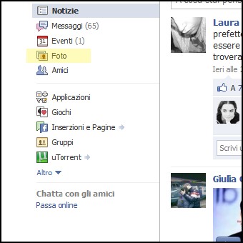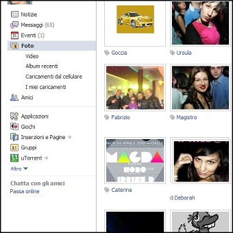 | 1-2. Il modo più semplice per trovare le foto che i tuoi amici hanno caricato è quello di andare alla scheda “Foto” presente in Home Page. È possibile visualizzare le immagini in diversi modi: Singole foto: semplicemente cliccando sulla scheda ‘Foto’ è possibile visualizzare tutte le foto caricati di recente \t\tindividualmente. Sotto di loro si può vedere il nome dell’album, così come il nome della persona che le ha caricate. Album recenti: Se si clicca su “Album Recenti”, è possibile visualizzare tutti gli album appena caricati dai tuoi amici. Caricamenti dal Cellulare: Cliccando sulla scheda “Caricamenti dal cellulare” verranno mostrate solo le immagini caricate dai telefoni cellulari dei tuoi amici. | ||