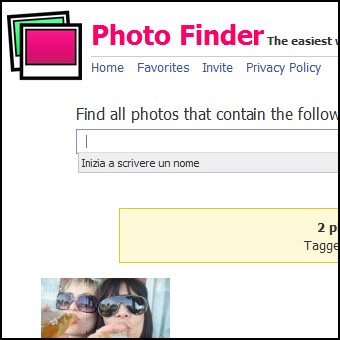 | 1. Photo Tagger già disponibile a chiunque disponga di un profilo consenta invece d’integrare il tagging tradizionale con il sistema sviluppato da Face.com. Il servizio non è infallibile, tant’è che può succedere che l’applicazione riconosca come propri i ritratti di qualcuno che abbia un taglio e/o un colore di capelli e di occhi simile. Tutto quello che dobbiamo fare è inserire un nome per vedere in primo piano tutti gli album della persona desiderata. 2. L’altra applicazione davvero eccezionale l’hanno chiamata Photo Finder e non a caso, visto che consente agli utenti di ricercare e ritrovare le proprie foto o quelle dei propri amici attraverso il riconoscimento facciale. Al momento in fase alpha e necessita di registrazione. | ||