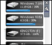 Il Gadget DriveInfo controlla lo spazio libero disponibile su uno o più di hard disk del PC. Visualizza lo spazio libero sia in GB e in percentuale. Il gadget DriveInfo è molto facile da configurare. Se si controllano frequentemente lo spazio libero disponibile sul vostro hard disk, questo gadget è quello che fa per voi. | ![]() |