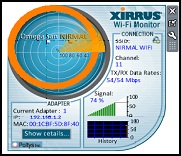 Con il Gadget xirrus Wi-Fi Monitor possiamo visualizzare la disponibilità delle connessioni di rete wireless, verificare la copertura wireless, e molto altro in una unica interfaccia. Tuttavia il Gadeget può risultare un pò invasivo a causa del display radar in esecuzione costantemente. | ![]() |