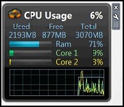 Il gadget All CPU Meter tiene traccia dell’ utilizzo della CPU e della memoria utilizzata e disponibile. Questo Gadget si distingue dagli altri per il suo sostegno a ben otto CPU differenti ! Tra le sue opzioni offre la regolazione dell’interfaccia in base a colori preconfezionati, una cosa utile per tutti gli amanti della personalizzazione. | ![]() |
