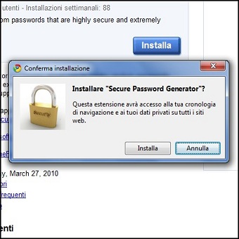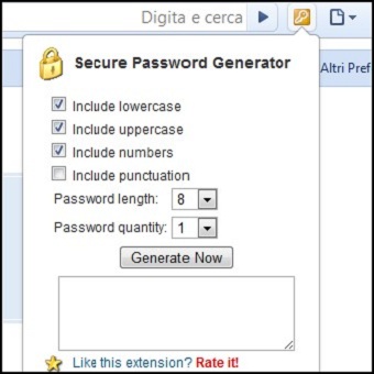 | Le funzionalità del browser Google Chrome possono essere estese con l’installazione delle estensioni. In passato abbiamo visto come installarle e ne abbiamo presentate diverse, a nostro parere molto utili. Oggi vogliamo presentarvi la possibilità di aggiungere un generatore di password completamente integrato nel browser. Secure Password Generator consente di generare password sicure e complesse che possono essere utilizzate per gli accessi web. |
