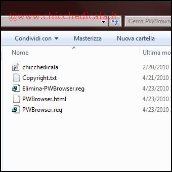 | Internet Explorer: iexplore C:\Windows\PWBrowser.html Mozilla Firefox: firefox C:\Windows\PWBrowser.html Google Chrome: “Percorso chorme.exe” C:\Windows\PWBrowser.html Opera: “Percorso Opera.exe” C:\Windows\PWBrowser.html | ||