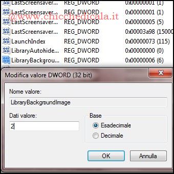| HKEY_CURRENT_USER\\Software\\Microsoft\\MediaPlayer\\Preferences 2. A destra individuiamo la variabile LibraryBackgroundImage e, con un doppio clic modifichiamo i Dati Valore con una cifra compresa tra 1 e 6. NOTA: La cifra 6 rappresenta lo sfondo predefinito. | ||