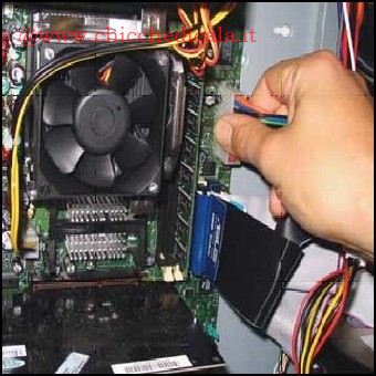 | 5. Se l’alimentatore ha cavetti in eccesso, bisogna ripiegarli con cura e spingerli in un vano frontale per periferiche. Quando un cavo per le periferiche ha più connettori del necessario, usate quelli più vicini all’alimentatore lasciando scollegati quelli all’estremità del cavo. I cavetti giallo/neri che terminano con un connettore a 6 contatti si usano per alcuneschede grafiche ad alte prestazioni, e li potete lasciare scollegati se il PC ha una scheda grafica standard. Il cavo a 24 conduttori per la scheda madre entra anche nel connettore di vecchia generazione a 20 poli, che è sagomato per consentire l’inserimento solo con il giusto orientamento. 6. Prima di chiudere il coperchio del computer, provate ad accenderlo per verificare se le pale delle ventole girano liberamente senza entrare in contatto con i cavetti. Se il computer non si accende, scollegate la sua presa di corrente a 230V e poi il connettore principale di alimentazione della scheda madre. Verificate se tutti i contatti sono integri e al loro posto. Verificate anche se i cavi del pannello frontale e quelli della ventola della CPU sono ancora innestati nei loro connettori, e se il cavetto giallo/nero per l’alimentazione della CPU è innestato a fondo nel suo connettore sulla scheda madre. A volte inserendo i connettori dell’alimentatore la scheda grafica esce dallo slot perché la scheda madre si flette leggermente. Controllate se è ben inserita, e provate a spingerla a fondo in posizione. | ||