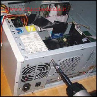 | 1. Scolleghiamo tutti i cavi | 2. Smontiamo il vecchio alimentatore | |