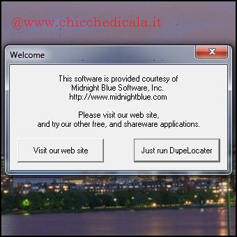 | 1. DupeLocater non richiede alcuna procedura di installazione. È sufficiente eseguire un doppio clic sul file DupeLocatet.exe, con il tasto sinistro del mouse. Nella schermata che appare clicchiamo sul tasto Just run DupeLocater per accedere alla schermata principale del software. Altrimenti, se vogliamo visitare il sito del produttore premiamo sul tasto Visit our web site. 2. Per scoprire se il nostro archivio fotografico o musicale presenta dei doppioni, è sufficiente trascinare nella finestra Search Paths la cartella che contiene i nostri preziosi file e cliccare sul pulsante Search in basso. DupeLocater li controllerà uno ad uno, senza tener conto del nome o della data, ma effettuando una profonda scansione dei bit che compongono i vari file. In questo modo, anche due documenti, due immagini, o due brani musicali con nomi e date differenti, verranno indicate come responsabili di un inutile spreco di spazio su hard disk. Il tutto avverrà con una rapidità e con una precisione sbalorditiva. | ||