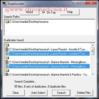 | 3. Alla fine del processo, nella finestra Duplicate found, possiamo notare che alcuni file sono stati evidenziati di colore blu. Essi rappresentano i duplicati che a detta del software possono essere rimossi serra problemi. Siccome fidarsi è bene, ma non fidarsi è meglio, verifichiamo personalmente. Andiamo nella cartella sottoposta a scansione e cerchiamo i file indicati da DupeLocater. Apriamoli e… sorpresa! Aveva ragione lui. 4. Quindi, torniamo nella schermata di DupeLocater, accertiamoci che il comando Auto Select sia attivato e clicchiamo sul pulsante Defete Files. In questo modo, non usciremo pazzi nel controllare manualmente, uno per uno, i file presenti nei nostri archivi. | ||