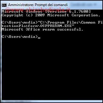 | %Program Files%\\Common Files\\microsoft shared\\OfficeSoftwareProtectionPlatform\\ 2. Per farlo apriamo il menu Start/Tutti i Programmi/Accessori, clicchiamo col tasto destro sulla voce Prompt dei Comandi, selezioniamo Esegui come Amministratore e digitiamo quanto segue: “C:\\Program Files\\Common Files\\microsoft shared\\OfficeSoftwareProtectionPlatform\\OSPPREARM.EXE” La procedura è possibile effettuarla per un totale di 5 volte il giorno prima della scadenza. | ||