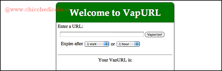 | VapURL è un servizio web con il quale creare link con una scadenza, facendo così in modo che dopo il verificarsi di una delle condizioni offerte dalla piattaforma questo non sia più valido e non porti più alla pagina inizialmente associata al collegamento creato, da qui il nome con il “Vap” iniziale che ovviamente richiama la parola vapor. | ||