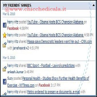 | Sei amante dei contenuti che girano sul web ? Guardi video on-line e clicchi spesso i collegamenti presenti su Twitter, Facebook, Digg o Goole Buzz ? Salvi spesso segnalibri di pagine interessanti o addirittura vuoi condividerle con gli amici ? Sharetivity permette di condividere i vostri contenuti su tutte le reti sociali semplicemente con un bookmarking. Inoltre è possibile inviare i contenuti tramite e-mail semplicemente con un clic, ciò consente di tenere traccia di tutti i contenuti condivisi in un unico ambiente, oltre che visualizzare gli argomenti preferiti dei nostri amici. | ||