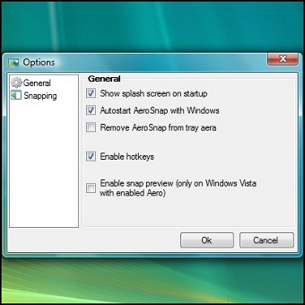 | 1. Non appena avremo terminato l’installazione di AeroSnap l’unica voce che visualizzeremo risiederà nella “System Tray“. Prima di proseguire è necessario dedicare un istante alla configurazione delle opzioni. Per farlo clicchiamo la voce analoga dal menu a tendina. Consigliamo di eseguire automaticamente AeroSnap all’acceso a Windows. Per farlo spuntiamo l’opzione “Autostart AeroSnap with Windows“. Da notare l’opzione “Enable snap preview (only on Windows Vista with enable Aero)“, che permette di abilitare la funzione Snap solo quando è abilitata la funzione Aero del sistema operativo. 2. La scheda Snapping può essere interessante per coloro che desiderano attivare tasti di scelta rapida. Un punto degno di nota è che il maggior numero di pixel dal bordo dello schermo che è possibile impostare per AeroSnap è di 20 pixel. AeroSnap è estremamente facile da usare… dobbiamo solo prendere la parte superiore di una finestra e trascinarla a sinistra, a destra, o verso la parte superiore dello schermo. NOTA: L’applicazione richiede .NET Framework 2.0 o superiore. | ||