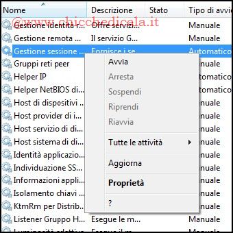 | 7. Apriamo il menu Start e nella casella di ricerca digitiamo Servizi seguito da Invio. Individuiamo “Gestione Sessioni di Gestione finestre Desktop” e Avviamo il servizio cliccando col tasto destro del mouse e selezionando la voce analoga. 8. A questo punto clicchiamo col tasto destro del mouse su un punto vuoto del Desktop, selezioniamo Personalizza e clicchiamo sul’opzione Colore Finestra. Spostiamo il cursore “Intensita Colore” all’estrema sinistra e salviamo le modifiche. Riavviamo il computer per rendere effettive le modifiche. | ||