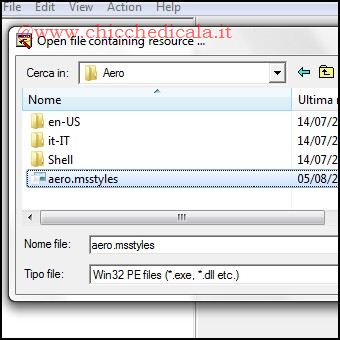 | 3. Disattiviamo il tema Aero | 4. Apriamo aero.msstyles | |
