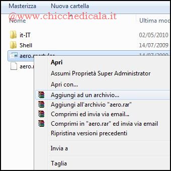 | 1. Come prima cosa dovremo assumere le proprietà del file aero.msstyles. Per farlo scarichiamo questo archivio e, con un doppio clic uniamo la chiave Assumi Proprietà Super Administrator.reg al registro di configurazione di Windows. Nel caso abbiate il UAC abilitato confermate l’azione rispondendo SI e nelle due finestre successive cliccate nuovamente SI/OK. 2. Ora portiamoci in C:\Windows\Resources\Themes\Aero. Clicchiamo col tasto destro del mouse sul file aero.msstyles e selezioniamo la voce Assumi Proprietà Super Administrator per avere il pieno controllo ed effettuare le modifiche necessarie senza dover seguire nessuna regola o permesso. | ||
