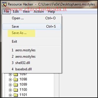 | 7. Ora portiamoci nel menu File, selezioniamo Save As, nominiamo aero.msstyles posizionandola sul desktop. 8. Portiamoci in C:\Windows\Resources\Themes\Aero clicchiamo con il tasto destro del mouse su aero.msstyles e rinominiamolo in “.Backup” . A questo punto clicchiamo col tasto destro del mouse su un punto vuoto del Desktop, selezioniamo Personalizza e clicchiamo sul’opzione Colore Finestra. Spostiamo il cursore “Intensita Colore” all’estrema sinistra e salviamo le modifiche. Riavviamo il computer per rendere effettive le modifiche. All’accesso a Windows avremo la nostra barra delle applicazione avrà un aspetto simile alle immagini sottostanti. | ||